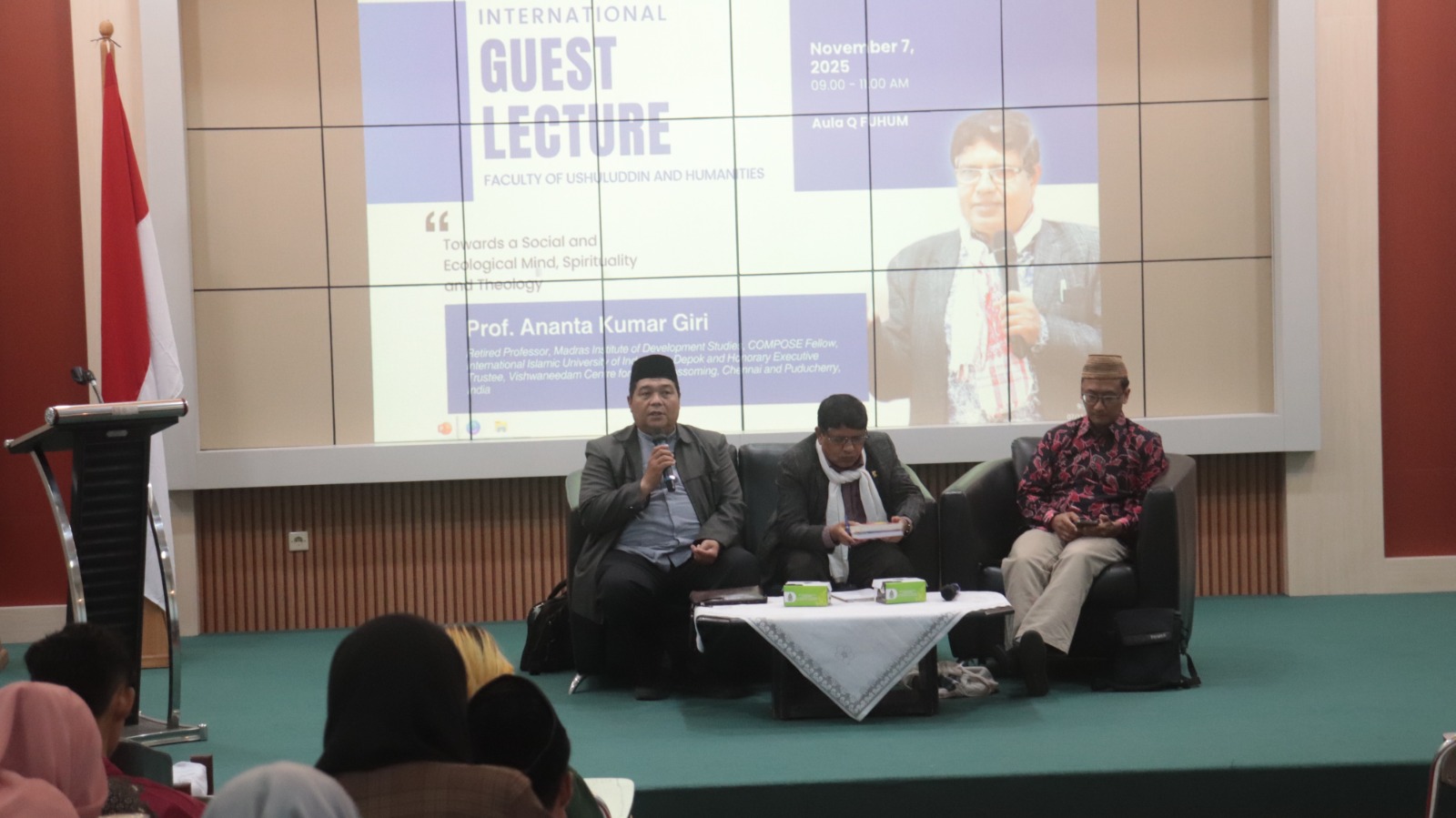fuhum.walisongo.ac.id – Semarang, Jum’at (07/11/2025), Fakultas Ushuluddin dan Humaniora (FUHUM) UIN Walisongo Semarang kembali menunjukkan komitmennya dalam memperkuat atmosfer akademik internasional dengan menyelenggarakan International Guest Lecture bertema “Towards a Social and Ecological Mind, Spirituality and Theology.” Kegiatan ini menghadirkan pemikir global, Prof. Ananta Kumar Giri dari India sebagai narasumber utama, dan dipandu oleh Ahmad Afnan Anshori, MA sebagai moderator.